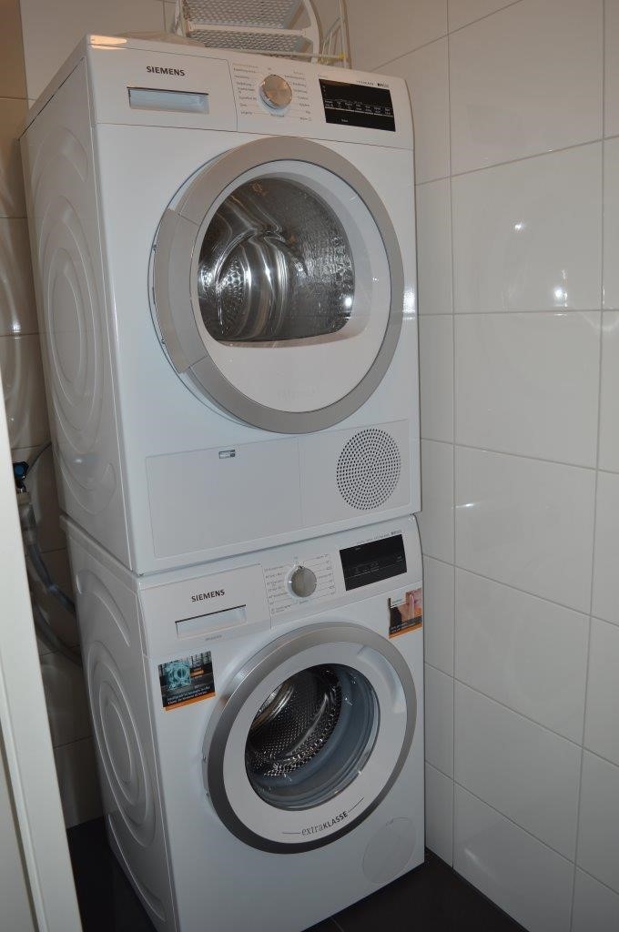 Separate ruimte met wasmachines en wasdrogers aanwezig.