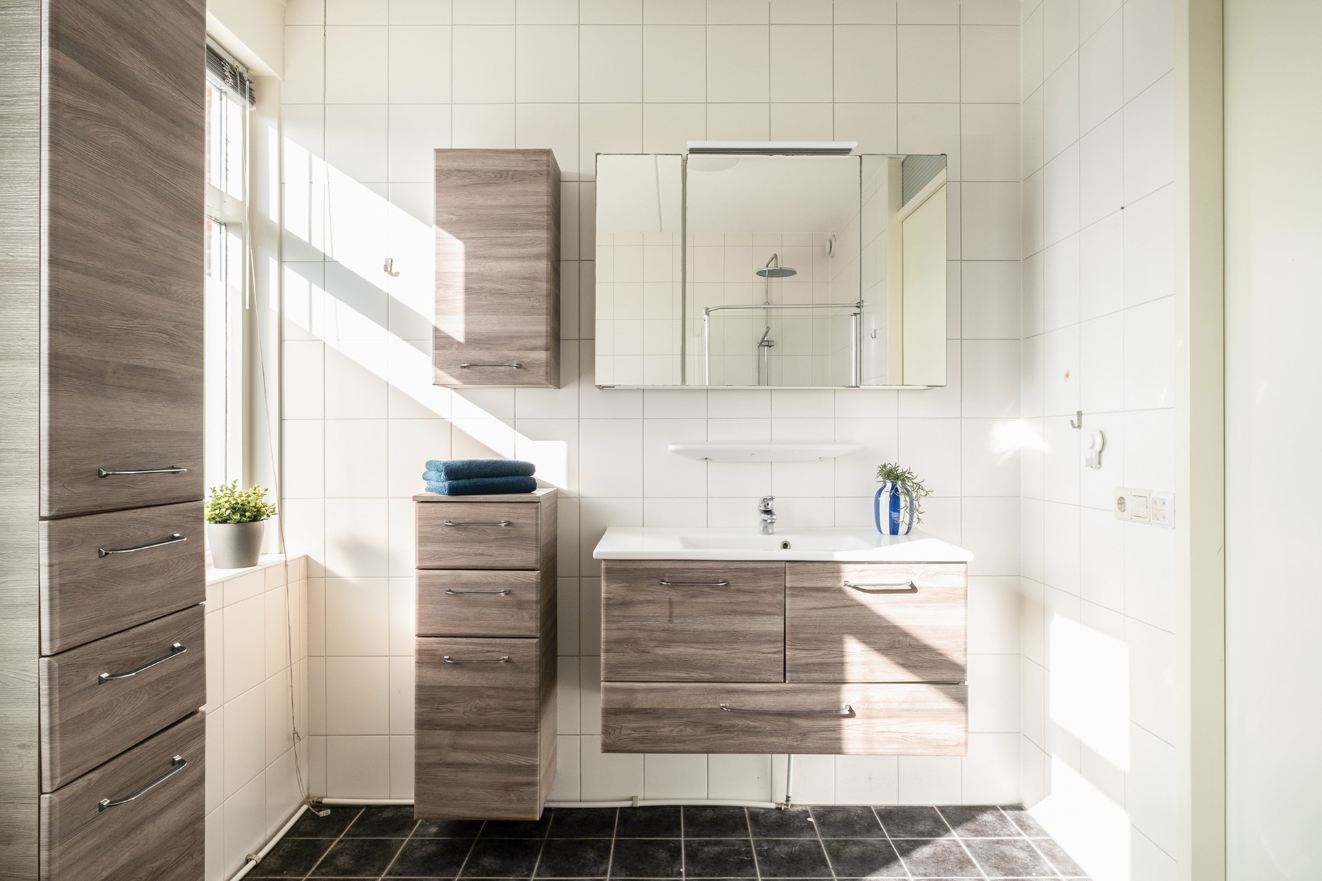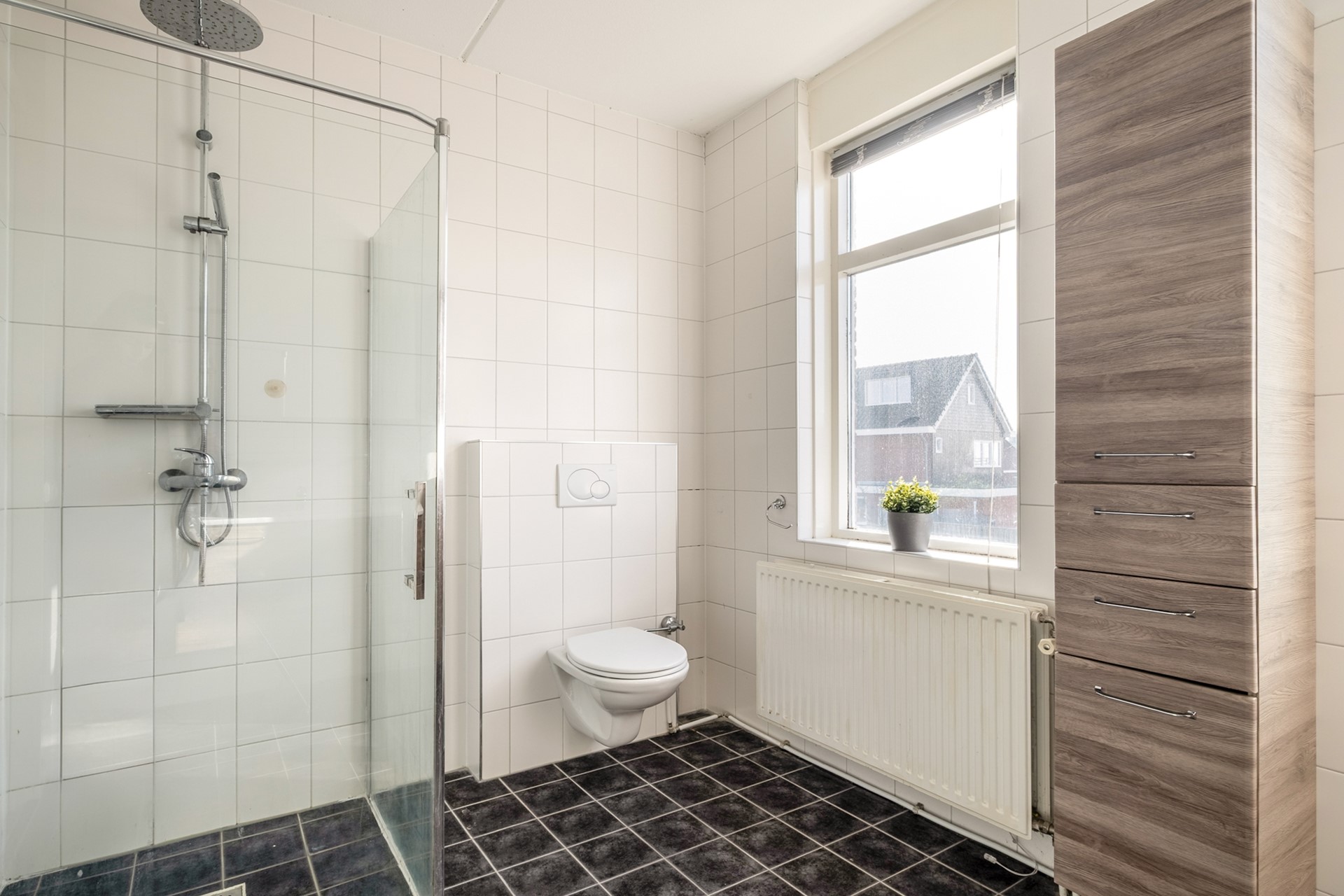 Op de eerste verdieping bevinden zich drie slaapkamers en de badkamer. De kamers zijn licht en goed in te richten, waardoor ze zich perfect lenen als slaapkamer, thuiswerkplek of studeerkamer. Ideaal voor wie hybride werkt of studeert. De badkamer is compleet uitgevoerd met een douche, wastafel, toilet en wasmachine-aansluiting – een fijne plek om de dag ontspannen te beginnen of juist af te sluiten.