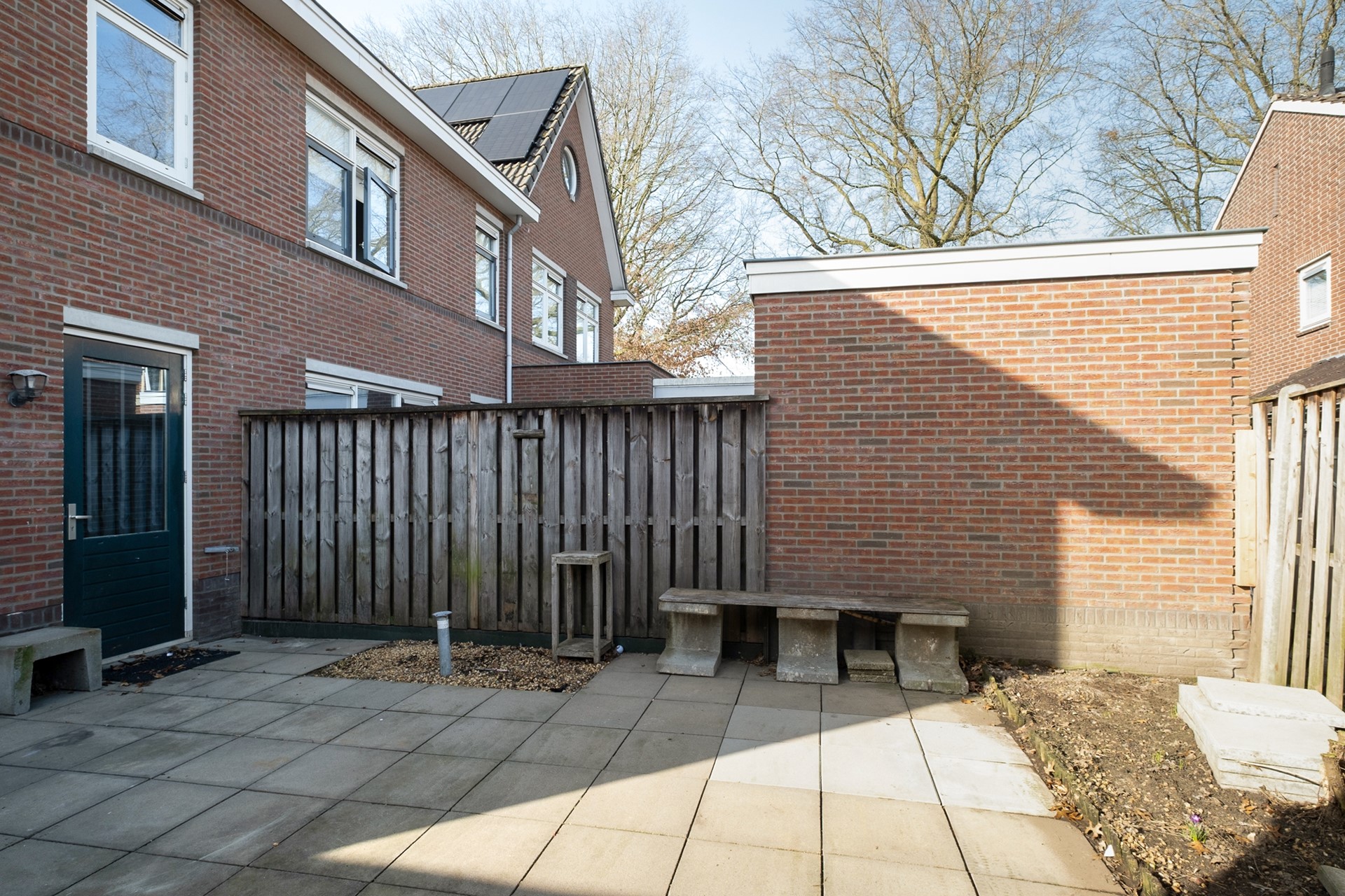 De achtertuin is onderhoudsvriendelijk aangelegd en een heerlijke plek om van het buitenleven te genieten. Op zonnige dagen zet je hier met gemak een loungeset of eettafel neer en kun je tot in de avond lekker buiten zitten.