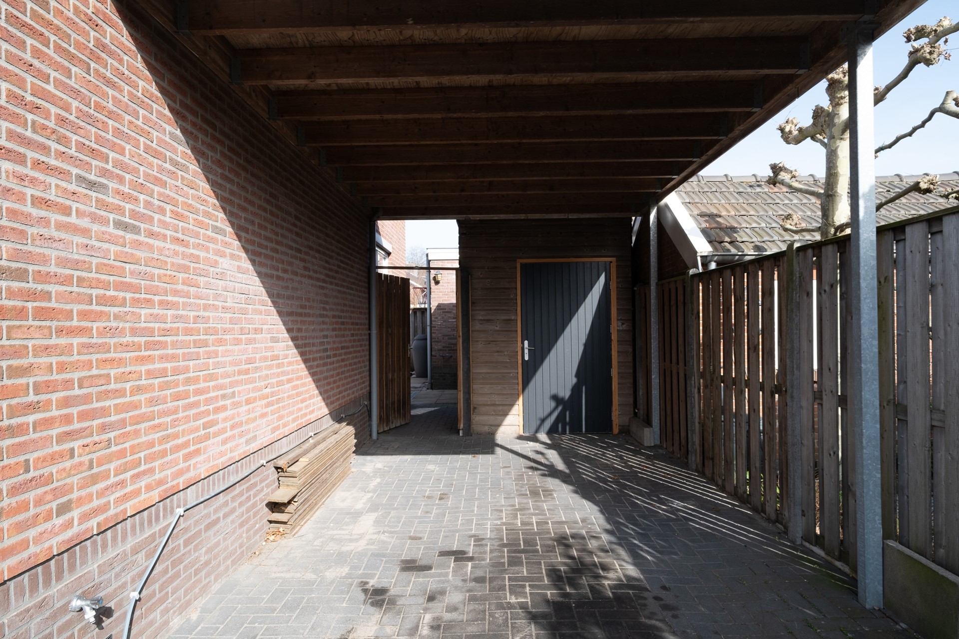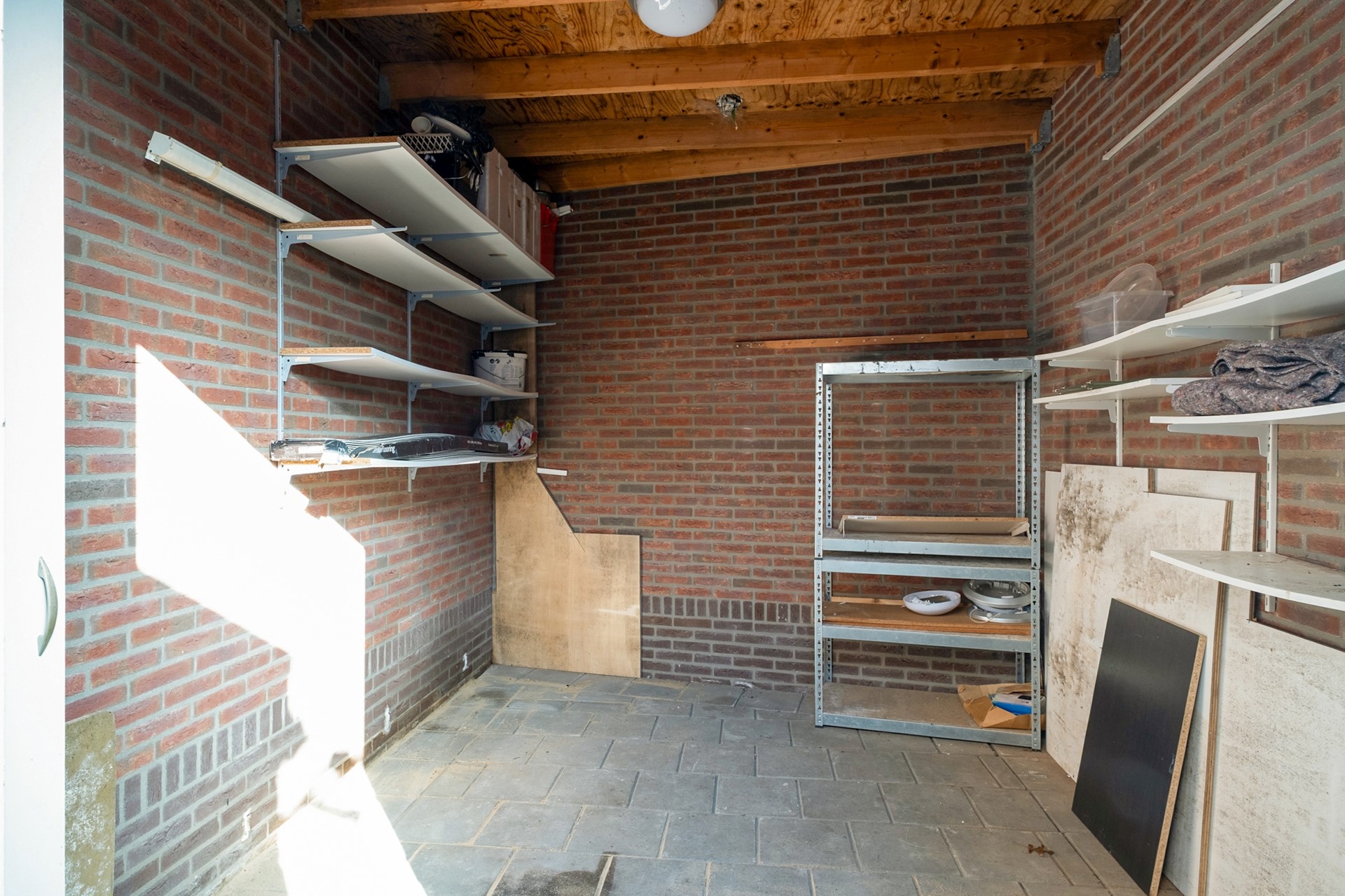 Achter in de tuin staat een vrijstaande stenen berging waar je je gereedschap of hobbyspullen kunt opbergen. De extra bergruimte toegankelijk vanuit de carport biedt ruimte om fietsen te plaatsen, wel zo praktisch.