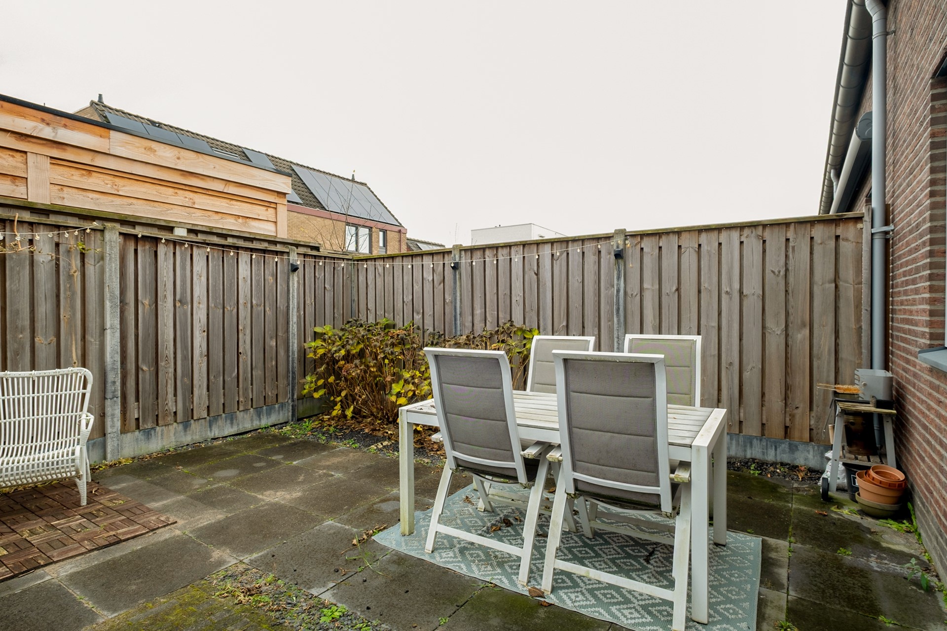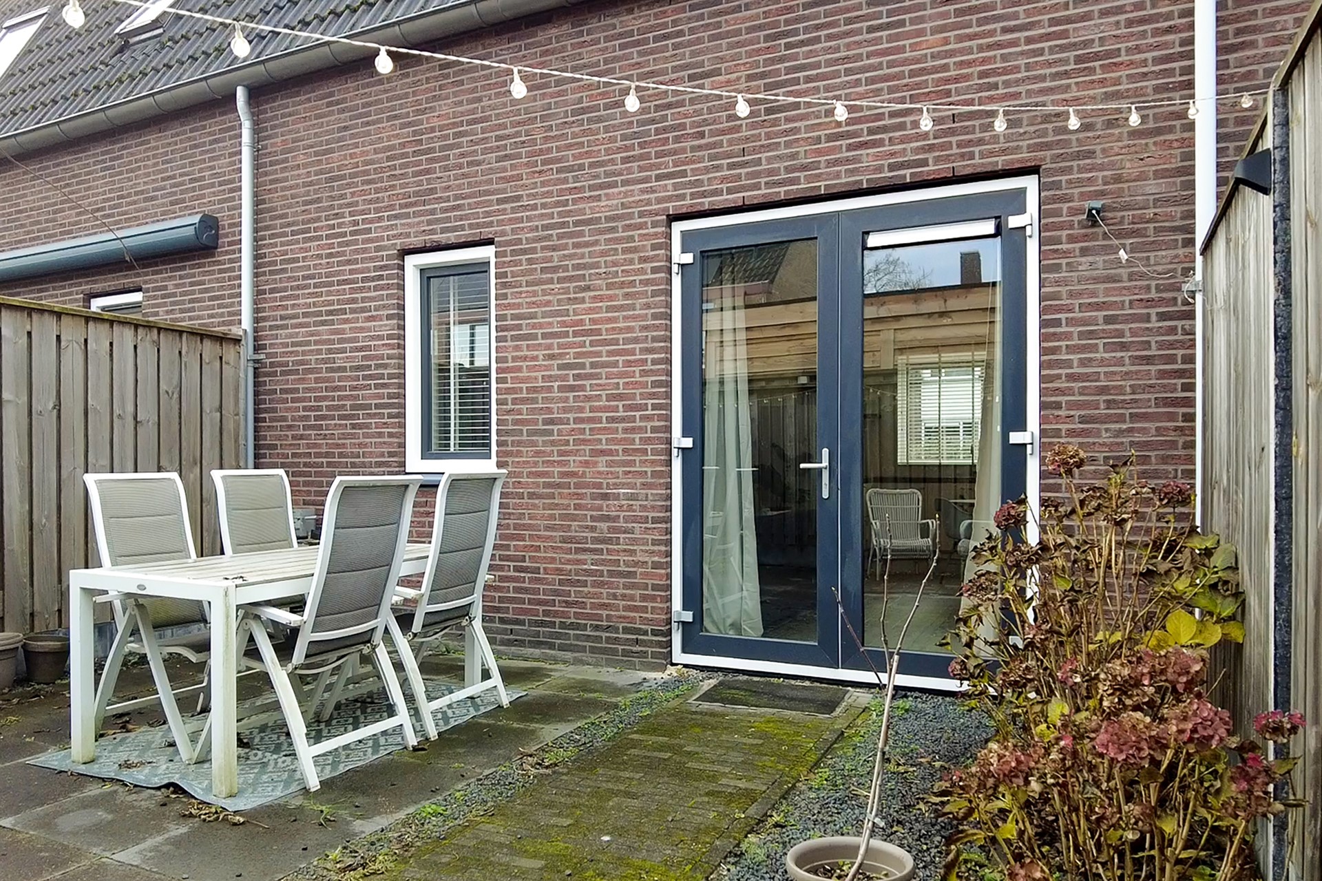 De dubbele deuren met naastgelegen raam laten volop daglicht binnen en creëren een fijne verbinding met de buitenruimte, welke volop privacy biedt. Dankzij de ligging op het oosten geniet je ’s ochtends van de eerste zonnestralen, terwijl de tuin op warme dagen juist prettig koel blijft. Het is een ideale plek voor een rustige start van de dag, een ontbijt in de zon of om later op de dag in de luwte te ontspannen.