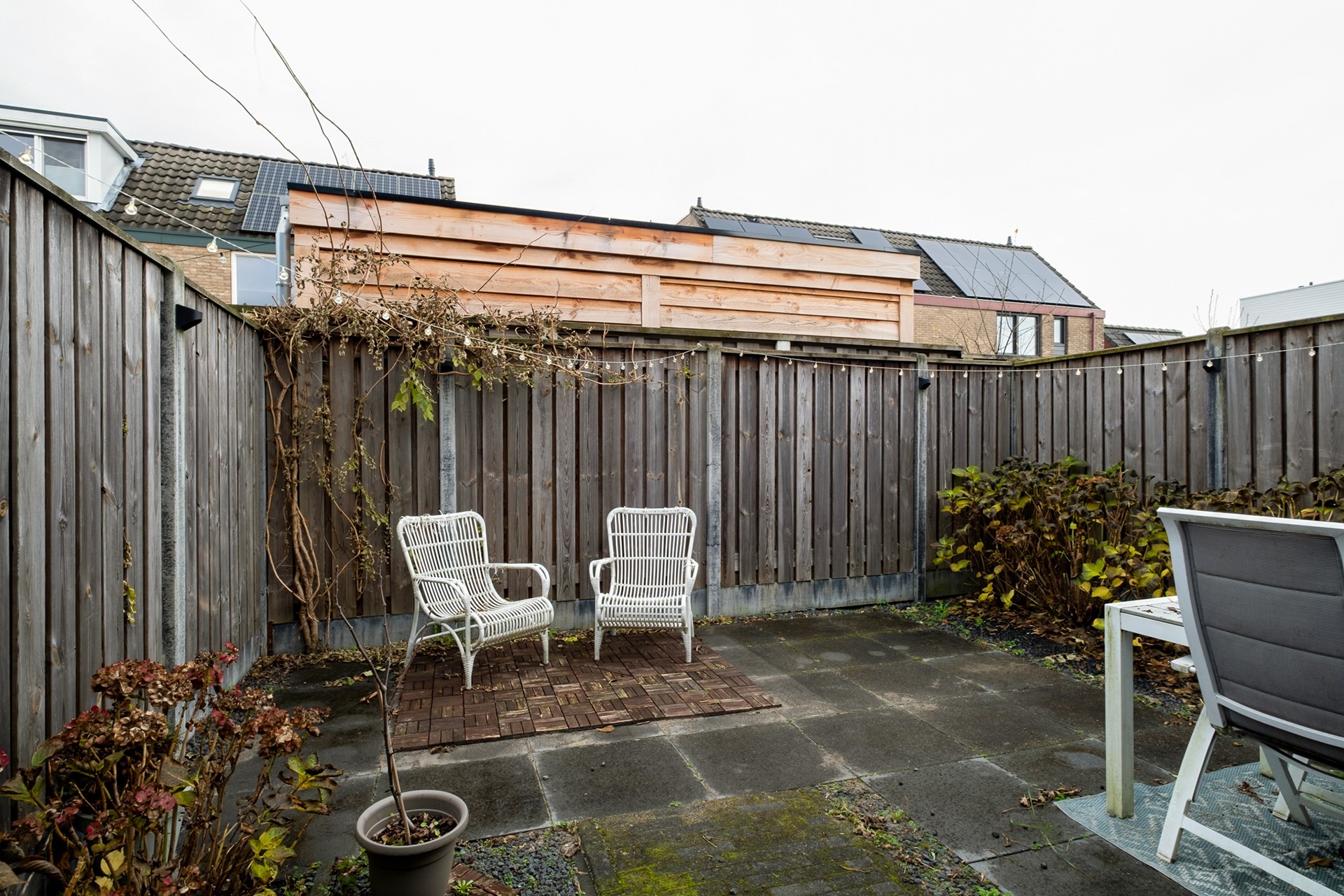 Achter het huis ligt een intieme, fijne tuin: precies groot genoeg om te genieten, precies klein genoeg om weinig onderhoud te vragen. De tuin voelt als een privé-plekje midden in de stad — afgesloten, rustig, en een verlengstuk van je woonkamer in de warmere maanden.