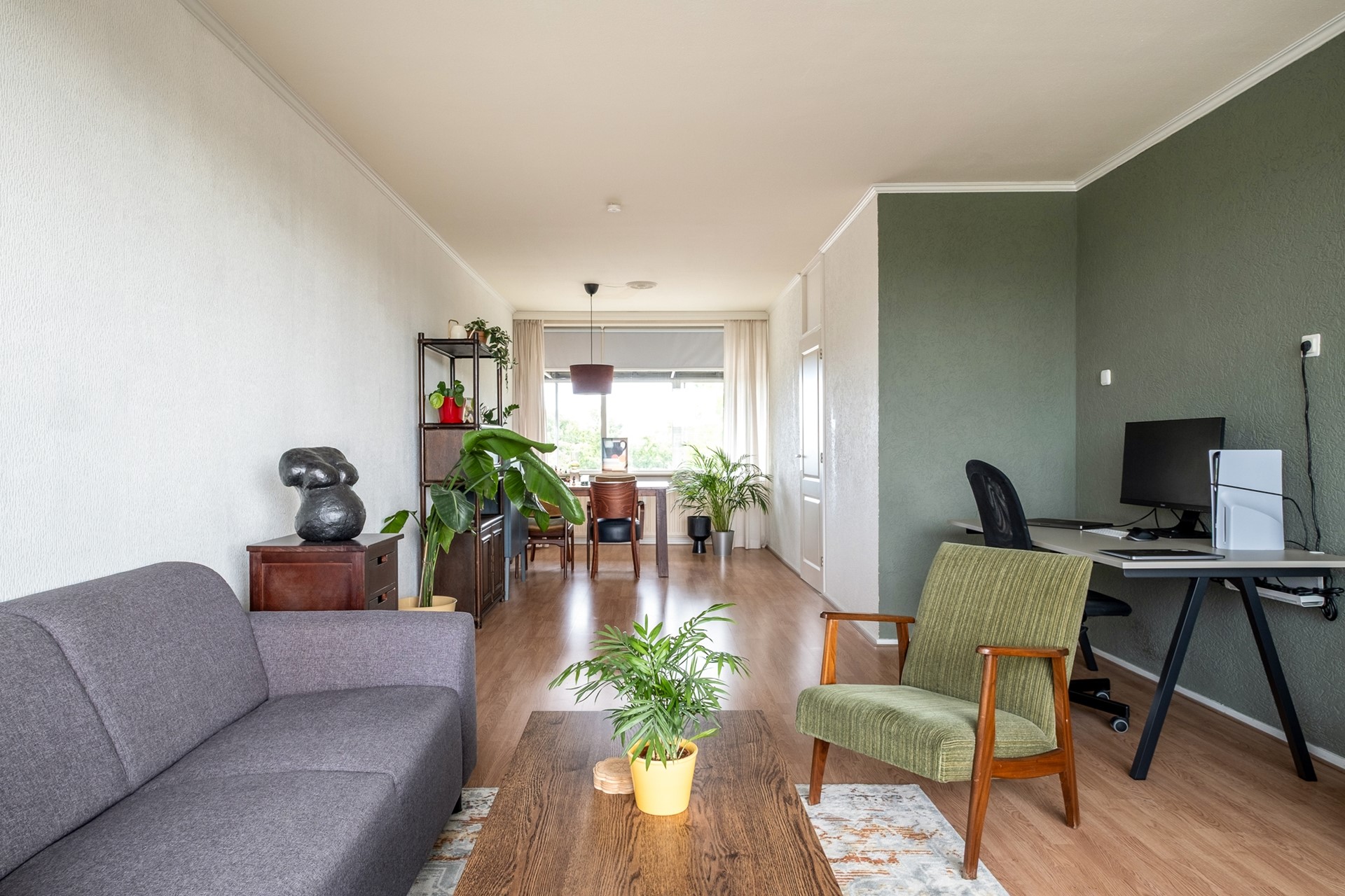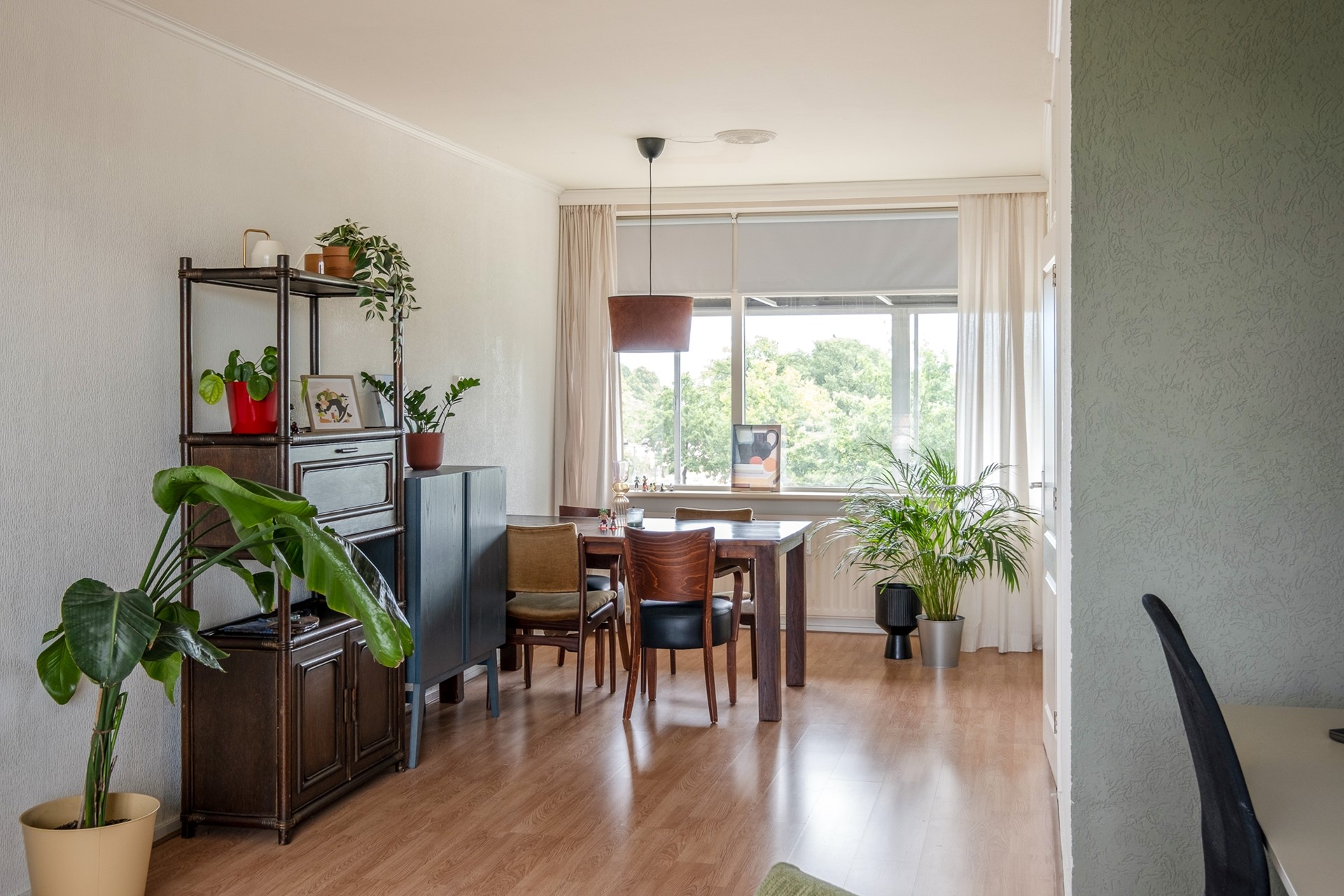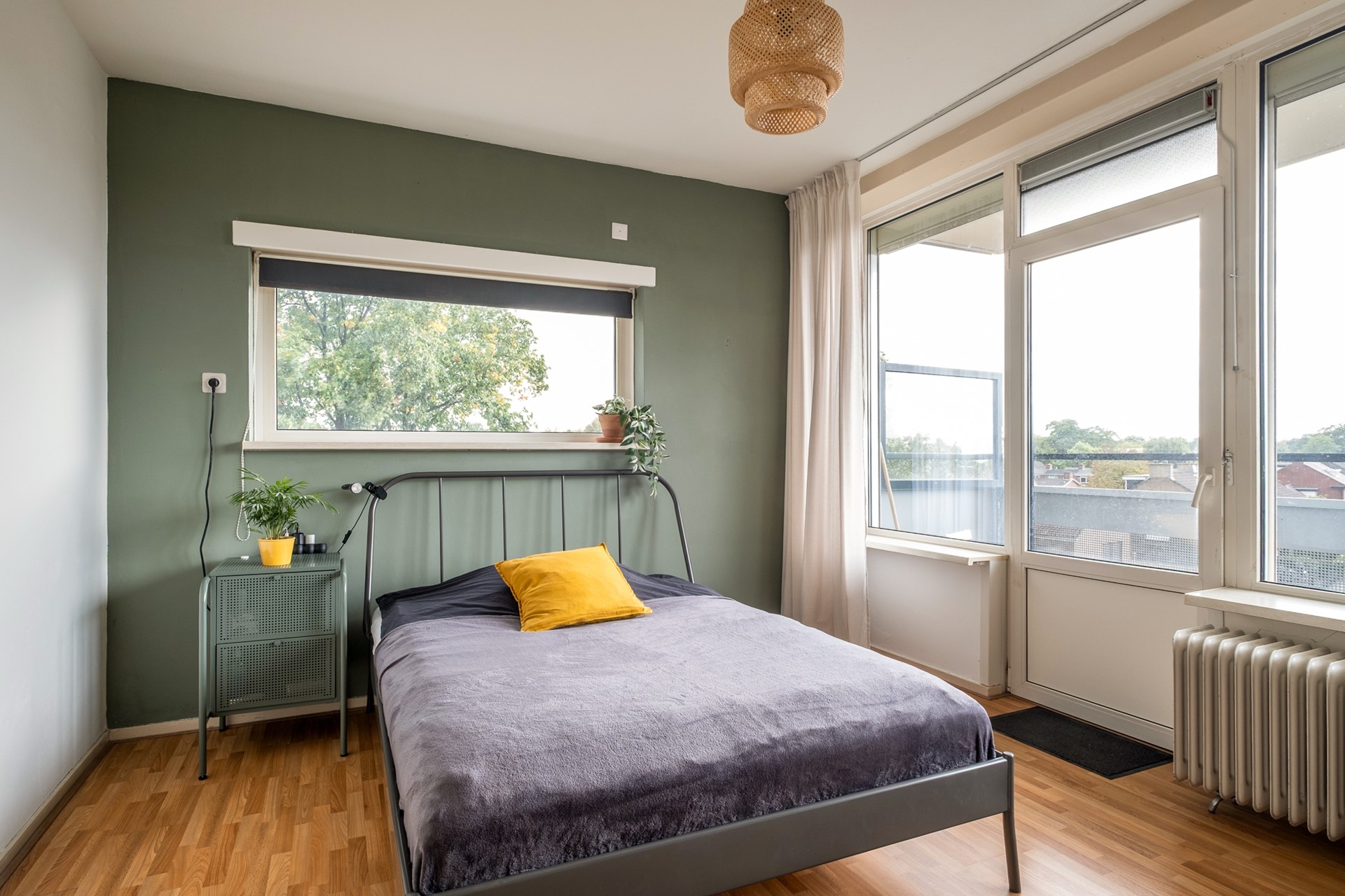De hal biedt toegang tot de verschillende vertrekken. De woonkamer en eetkamer zijn licht en ruim opgezet, voorzien van grote raampartijen en toegang tot het balkon. De afzonderlijke keuken is functioneel en biedt voldoende kastruimte. Er is een afzonderlijk toilet, wel zo handig! Er zijn maar liefst twee extra ruimtes, waarvan één ingericht als slaapkamer toegang heeft tot het balkon. De tweede ruimte kan als extra bergruimte worden ingericht en heeft een wasmachine aansluiting, maar is ook ruim genoeg voor een tweede slaapkamer. De badkamer beschikt over een douche, wastafel en radiator.