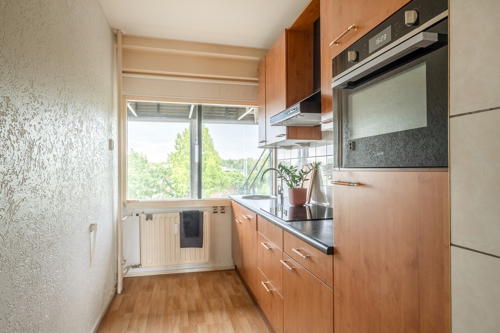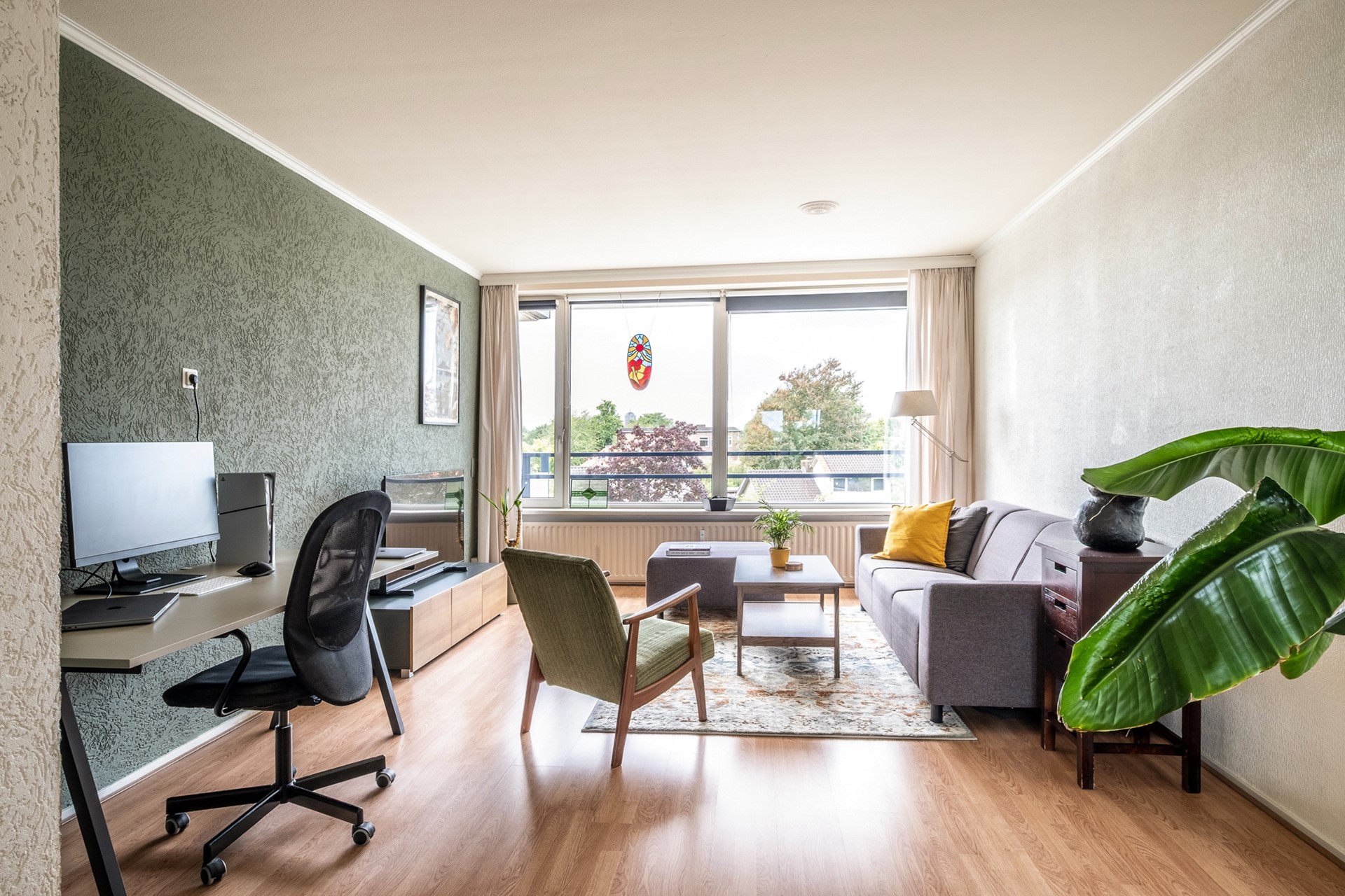 Het appartement bevindt zich op de tweede verdieping van een verzorgd appartementencomplex en biedt een fraai uitzicht vanuit zowel de woonkamer als het balkon.