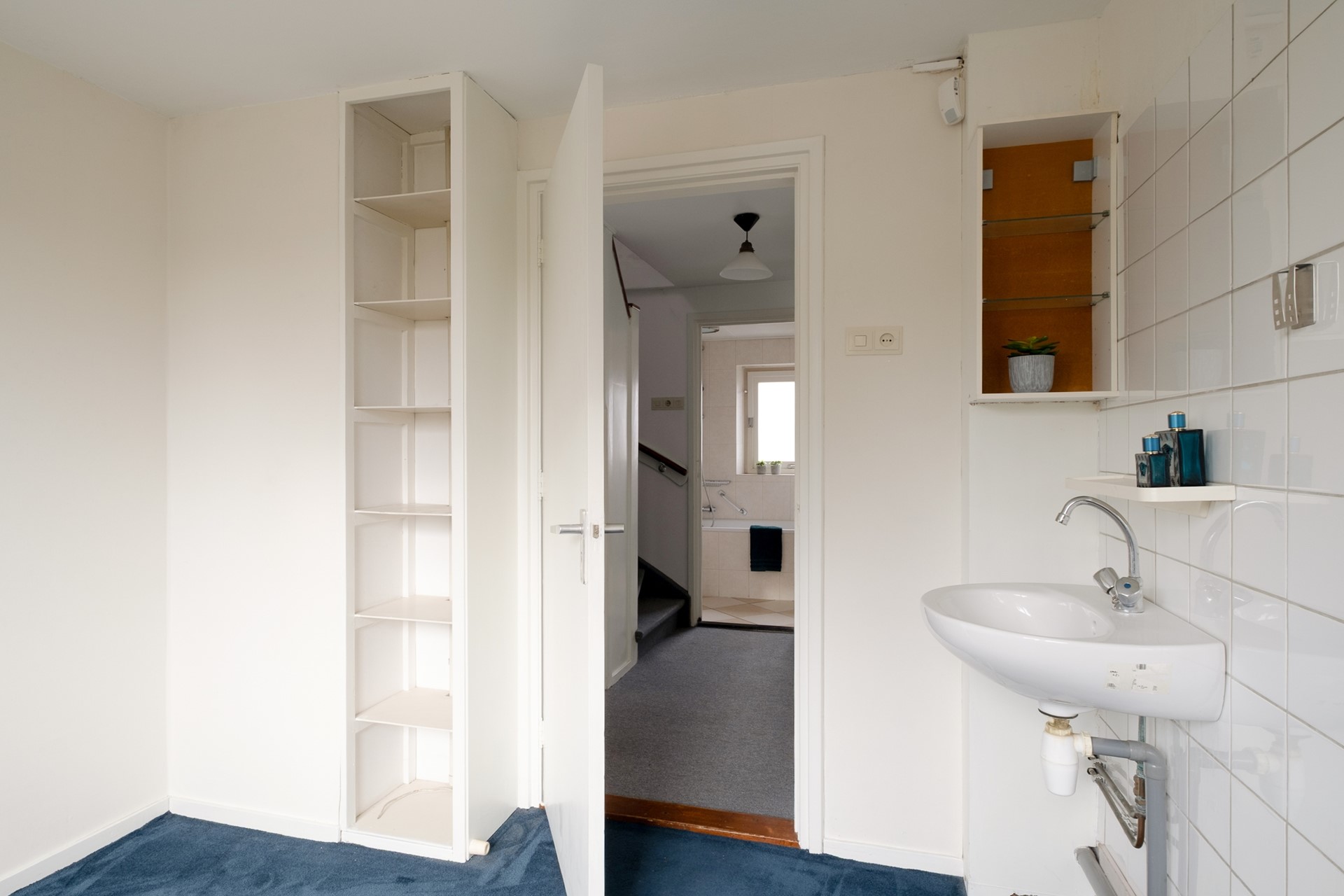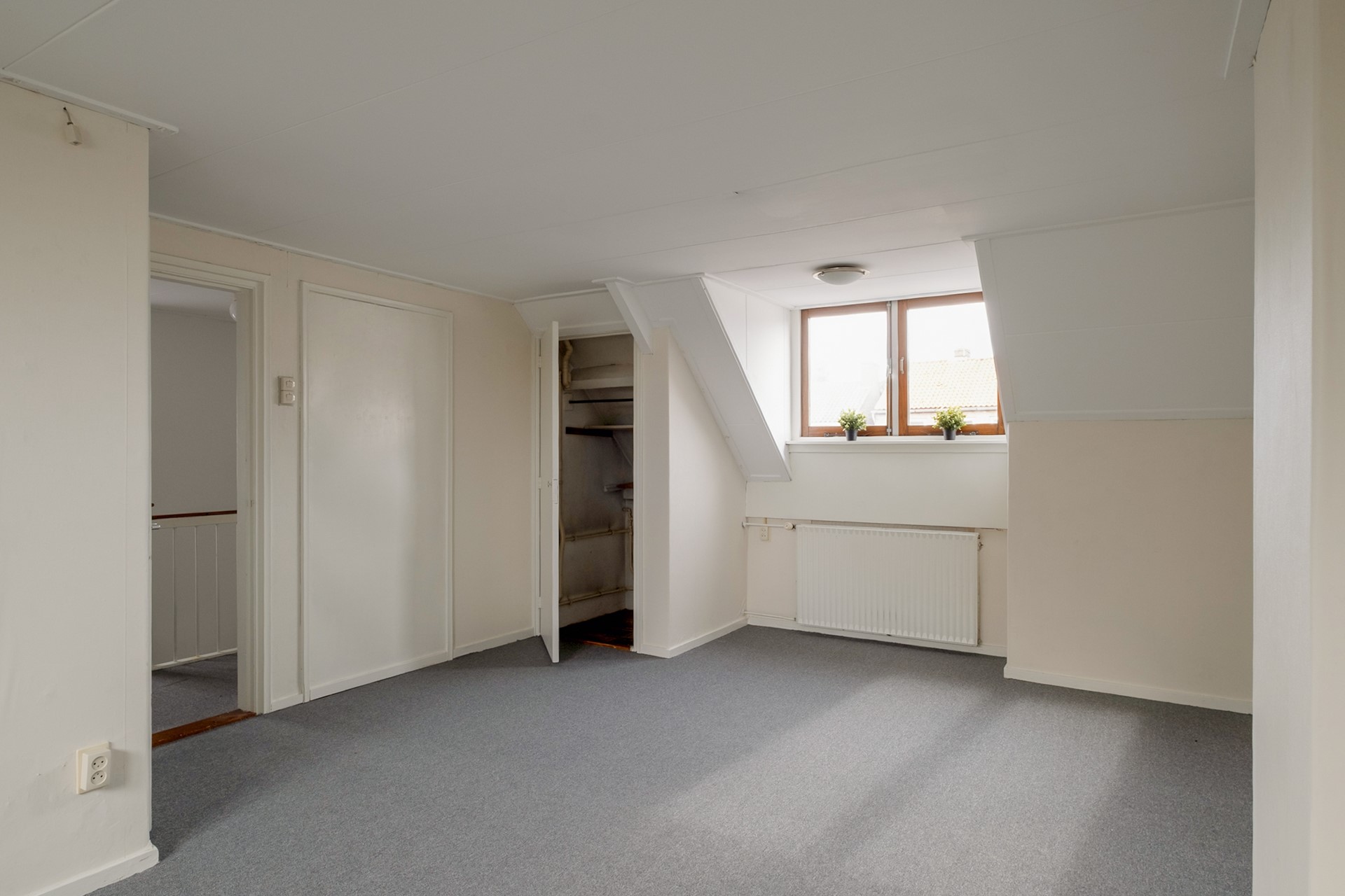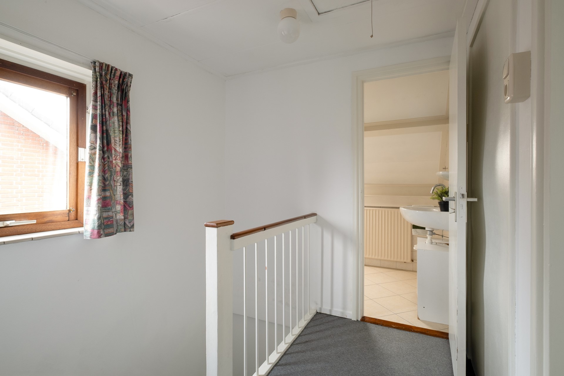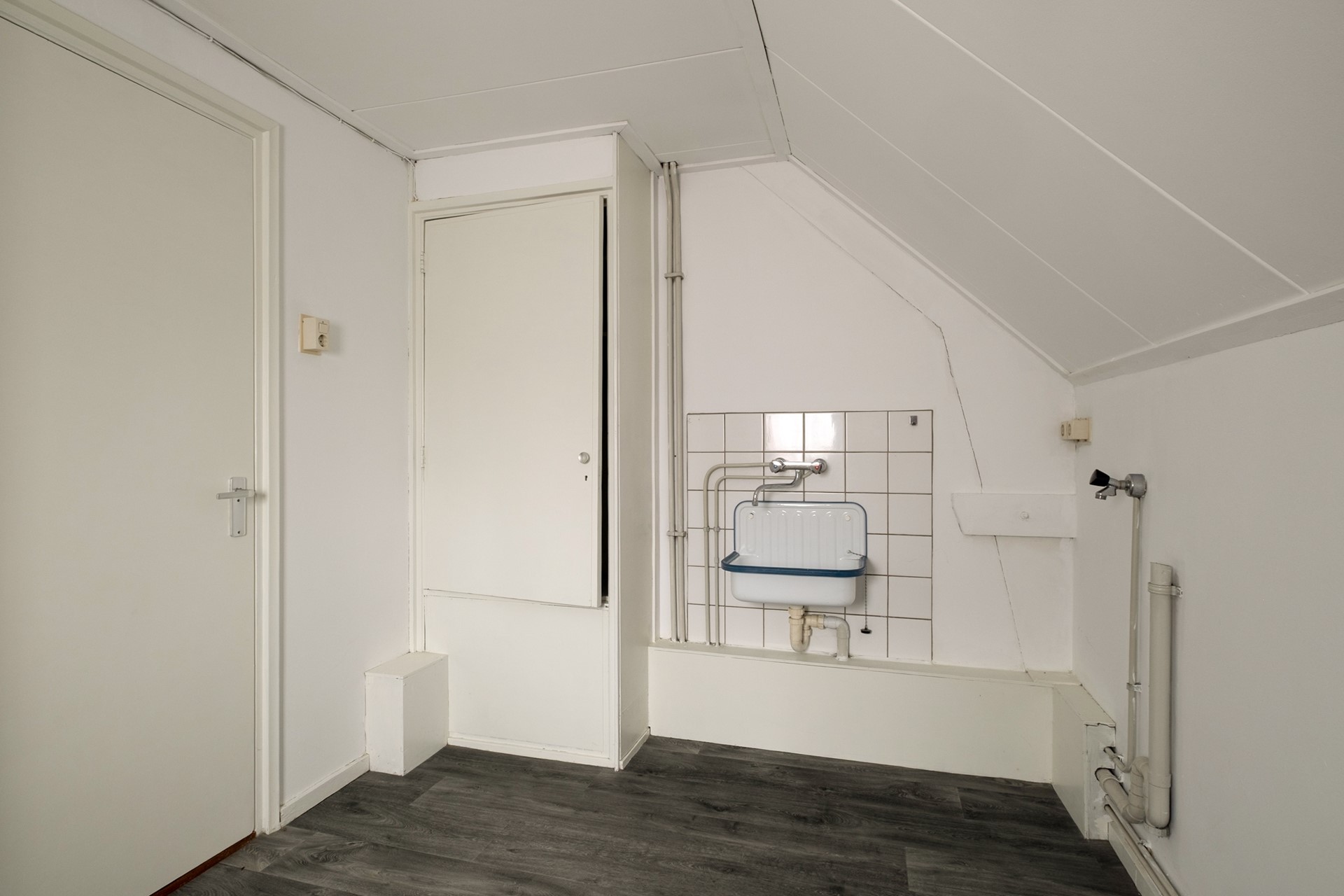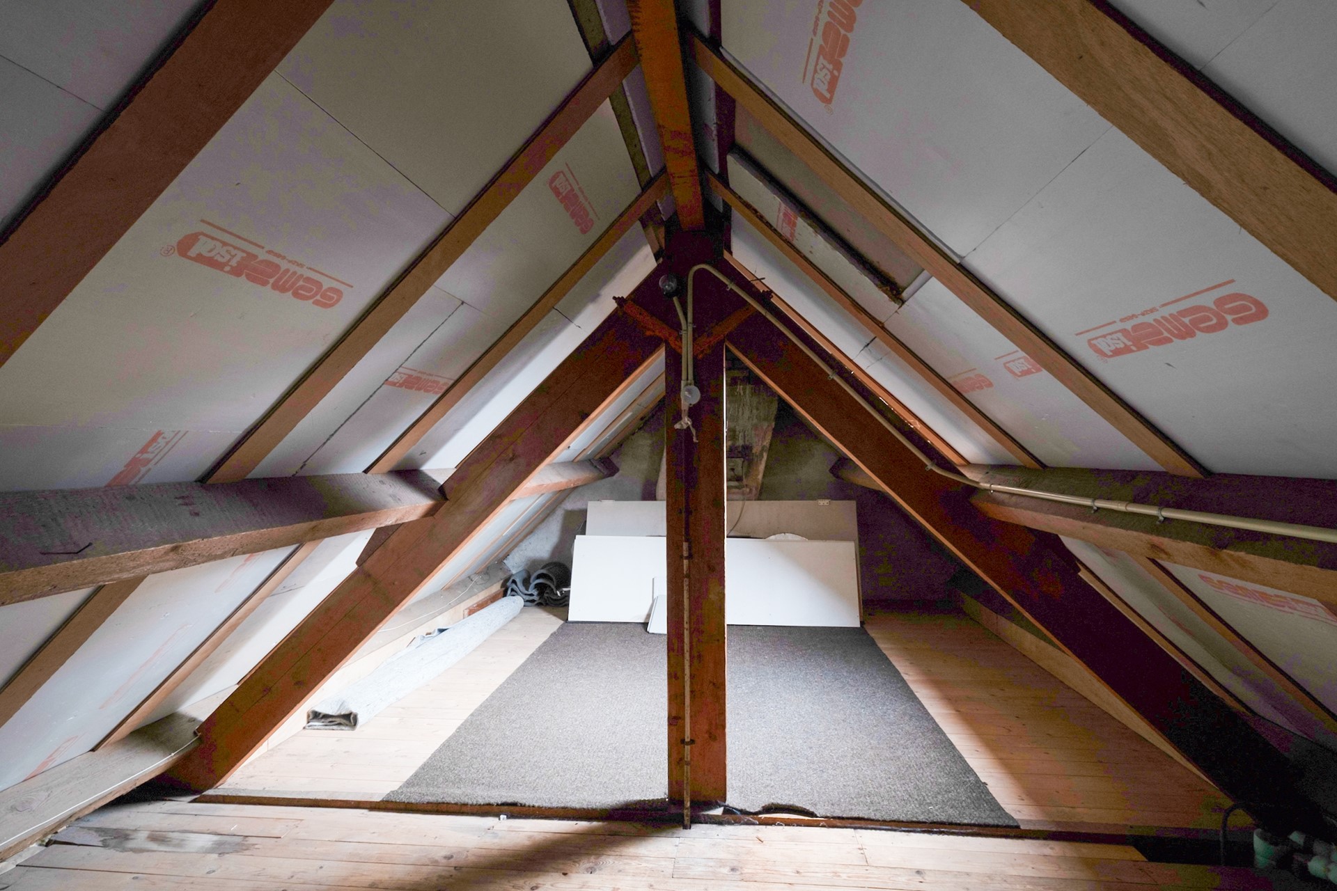 Via een vlizotrap bereik je de zolderverdieping — een open ruimte met stahoogte, ideaal als extra bergruimte. Daarnaast beschikt de woning over een kelder, praktisch voor opslag of voorraad.