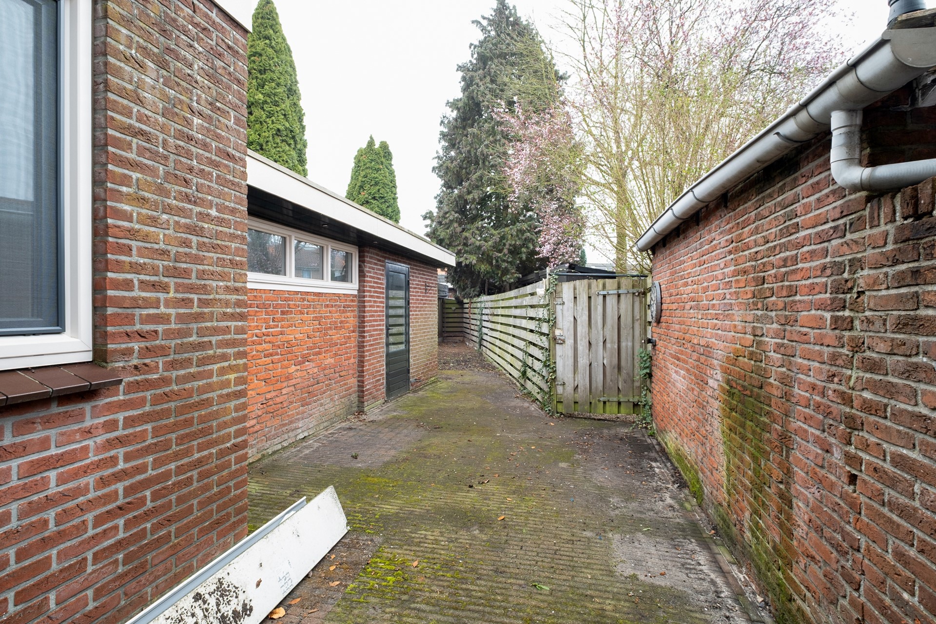 In de voortuin is er sprake van een praktische situatie waarbij een deel in gebruik is bij de buren en vice versa. De tuin is momenteel nog naar eigen inzicht in te richten – een mooie kans om hier een uitnodigende entree of groene voortuin te realiseren die helemaal bij jou past.