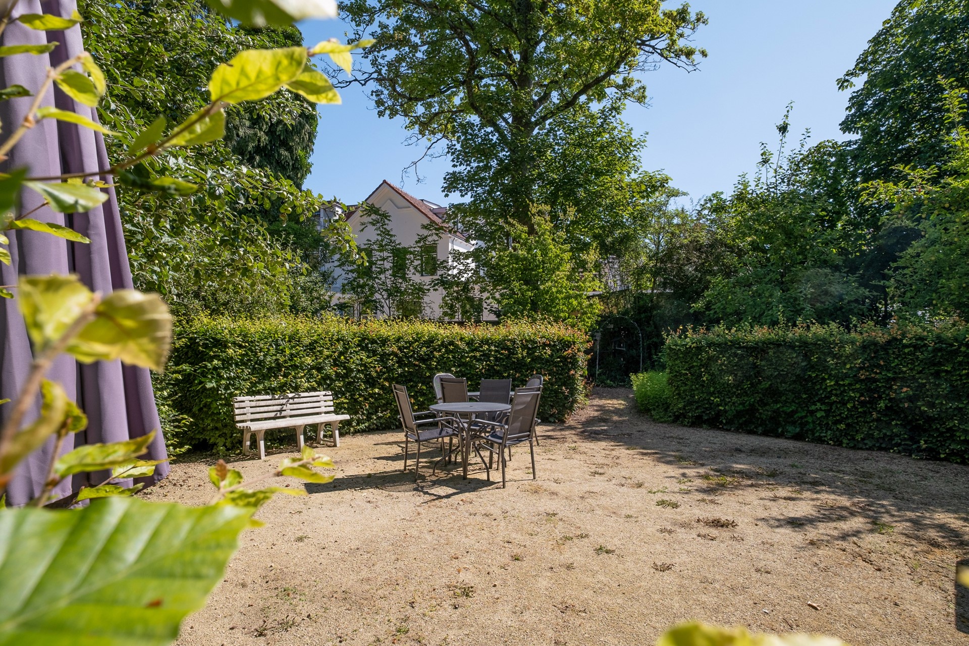 Rondom het gebouw bevindt zich de mooie aangelegde gezamenlijke tuin met terrassen.