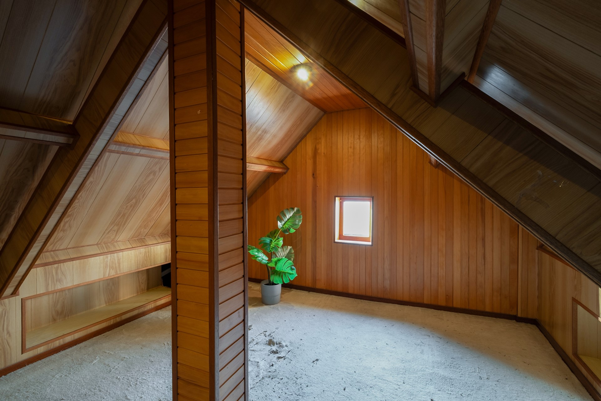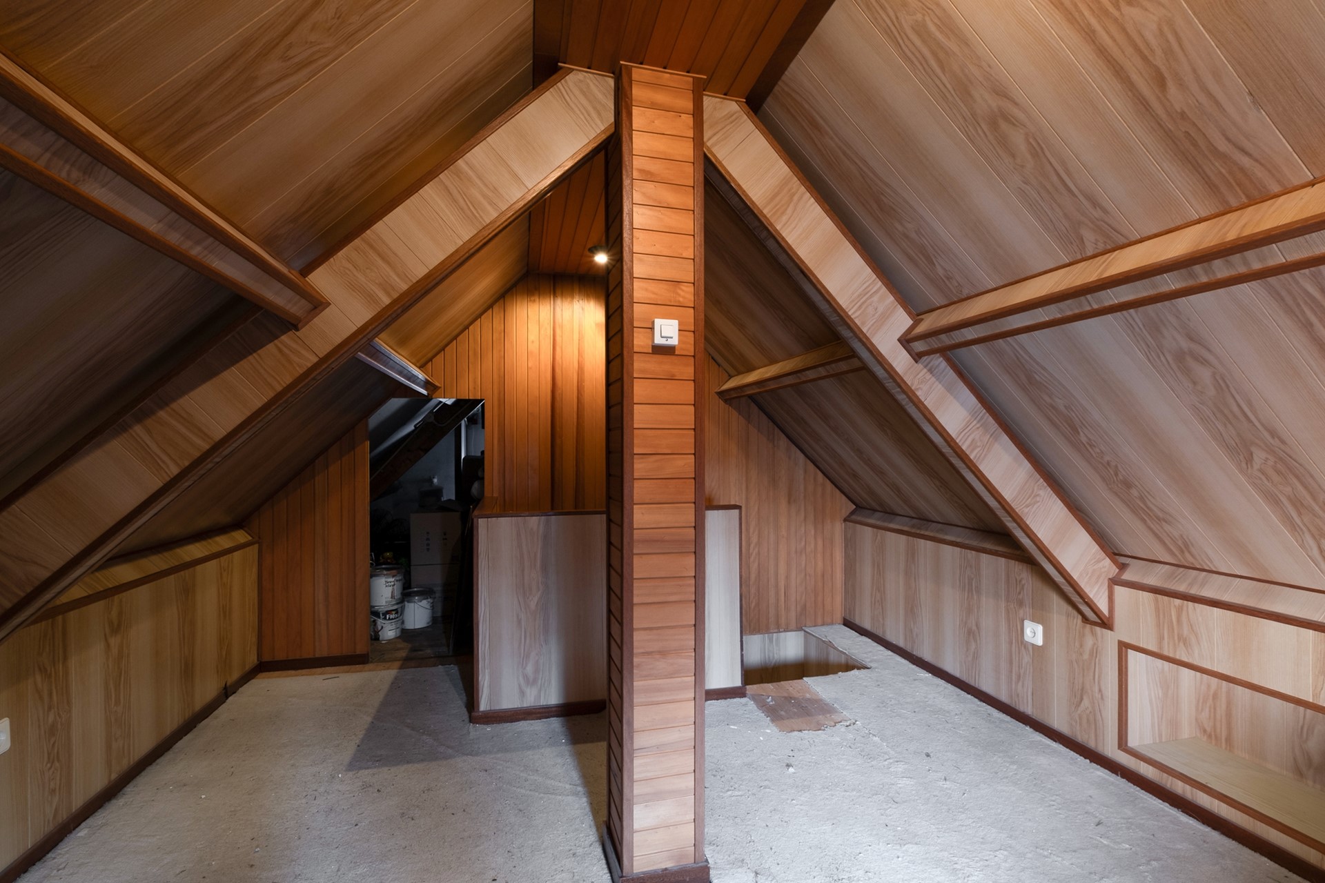 Via de vaste trap bereik je de zolderverdieping, een volwaardige extra verdieping met een warme, authentieke uitstraling. De zolderkamer is ruim van opzet en wordt gekenmerkt door de schuine kap en het zichtbare houtwerk, wat de ruimte veel karakter geeft. Daglicht zorgt voor een prettige, rustige sfeer.