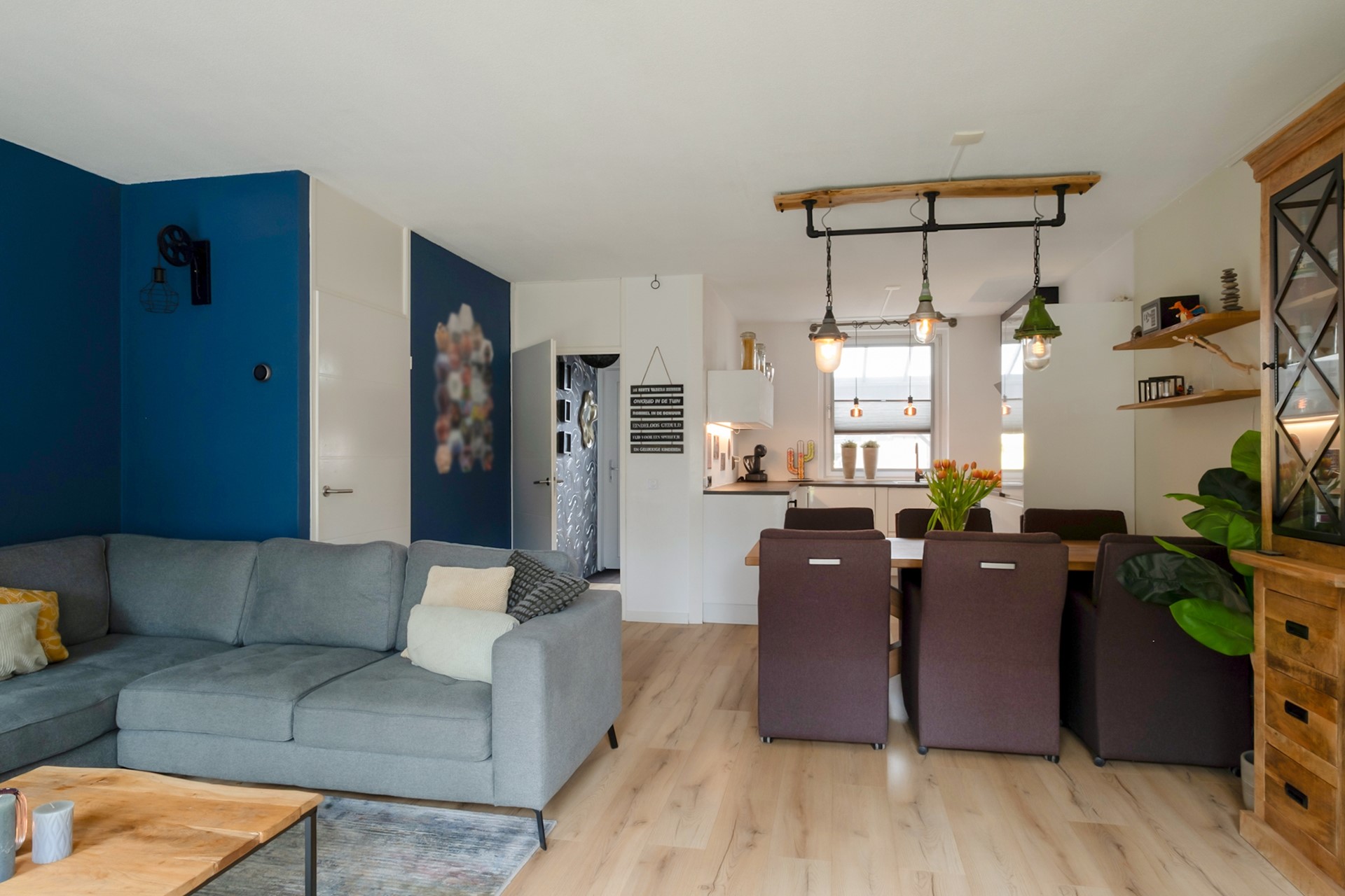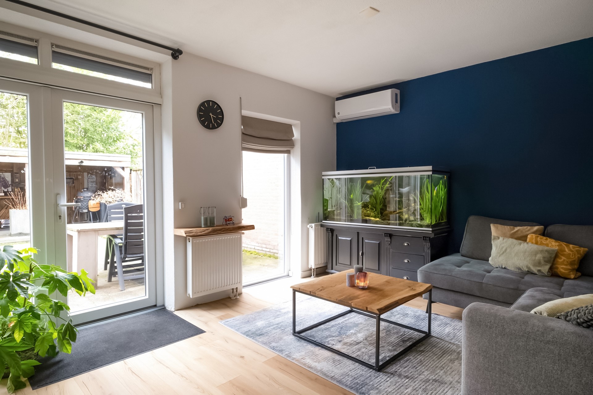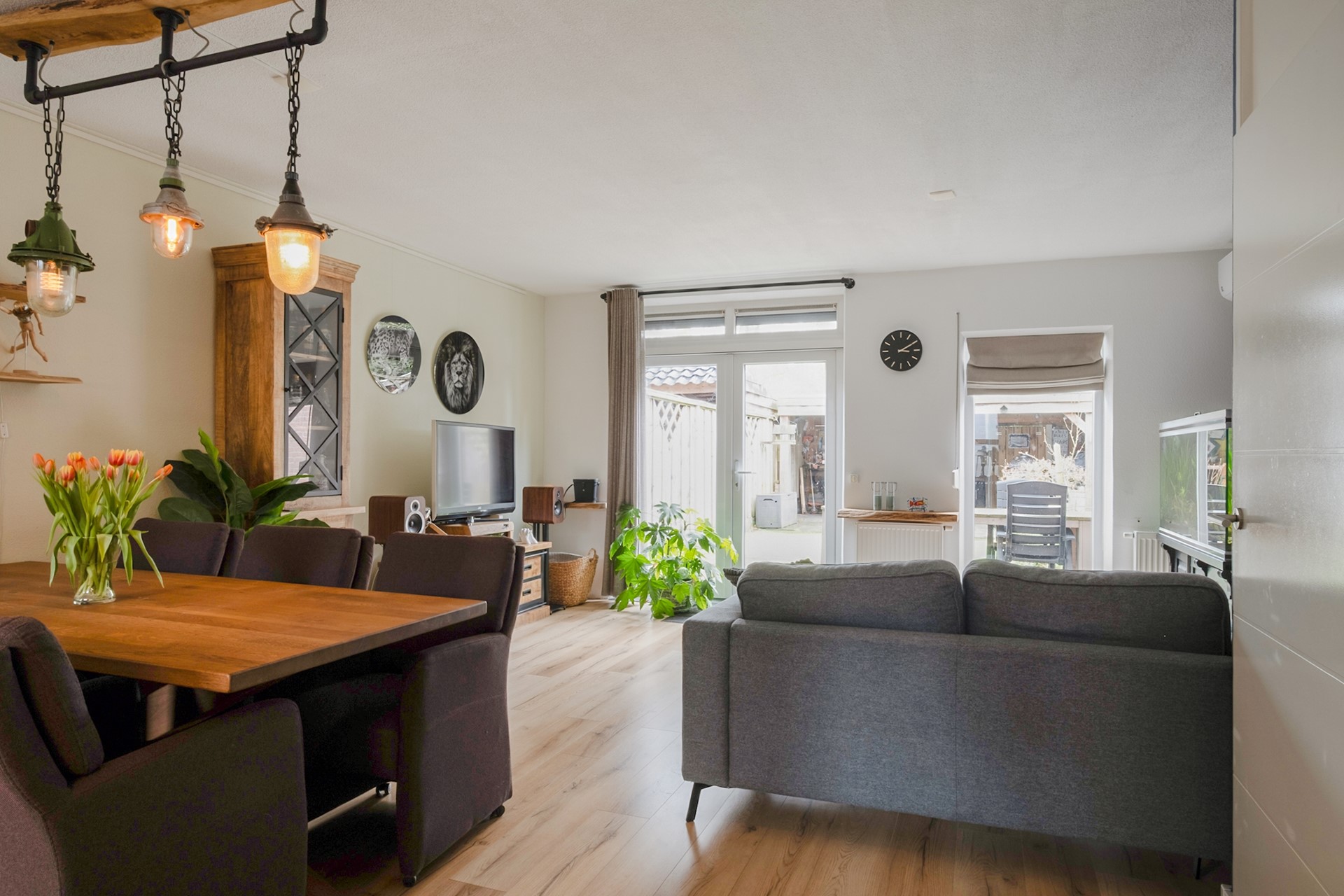 Via de entree kom je in de hal met meterkast, toiletruimte en trapopgang naar boven. De woonkamer is heerlijk licht en voelt direct ruim en comfortabel aan. Hier is volop plek voor een gezellige zithoek en een royale eettafel waar je met vrienden of familie samenkomt. Via de openslaande deuren loop je zo de tuin in. Wat een fijn gevoel wanneer binnen en buiten zo mooi in elkaar overlopen.