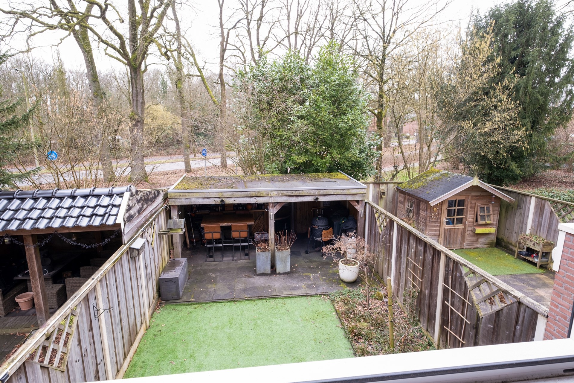 De achtertuin ligt op het zuidwesten, waardoor je hier vanaf de middag tot in de avond heerlijk van de zon kunt genieten. Hoe fijn is dat na een lange werkdag. Achterin de tuin staat een houten overkapping waar je beschut kunt zitten en lange zomeravonden kunt doorbrengen. Daarnaast is er aan de voorzijde van de woning een vrijstaande stenen berging voor fietsen en opslag en een eigen oprit met carport. Wat een gemak wanneer je altijd je eigen parkeerplek hebt.