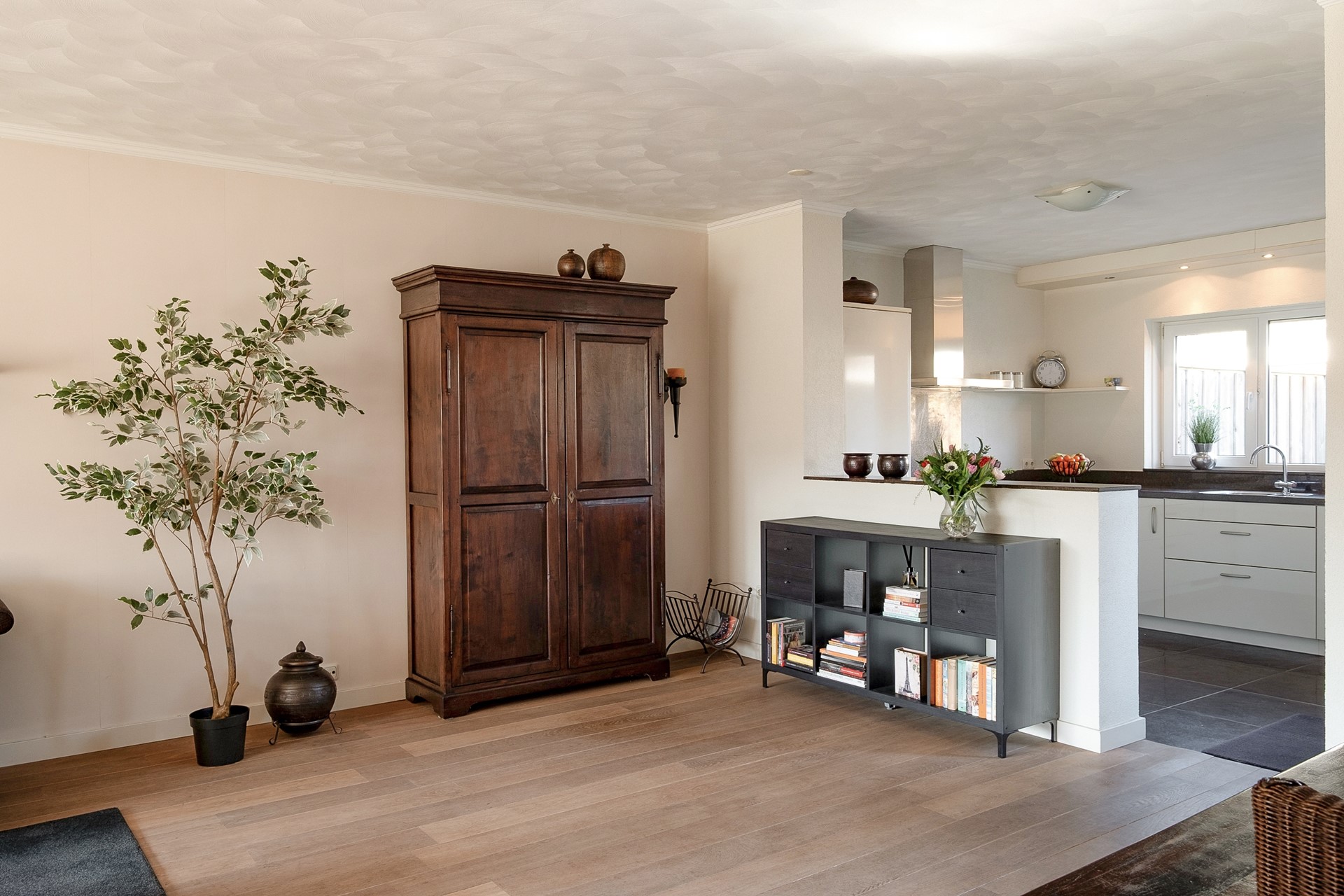 In de woonkamer merk je het meteen: dit is een woning waar goed voor is gezorgd. De ruimte is prettig van formaat en heeft een fijne lichtinval, waardoor het een warme en uitnodigende plek is om thuis te komen.