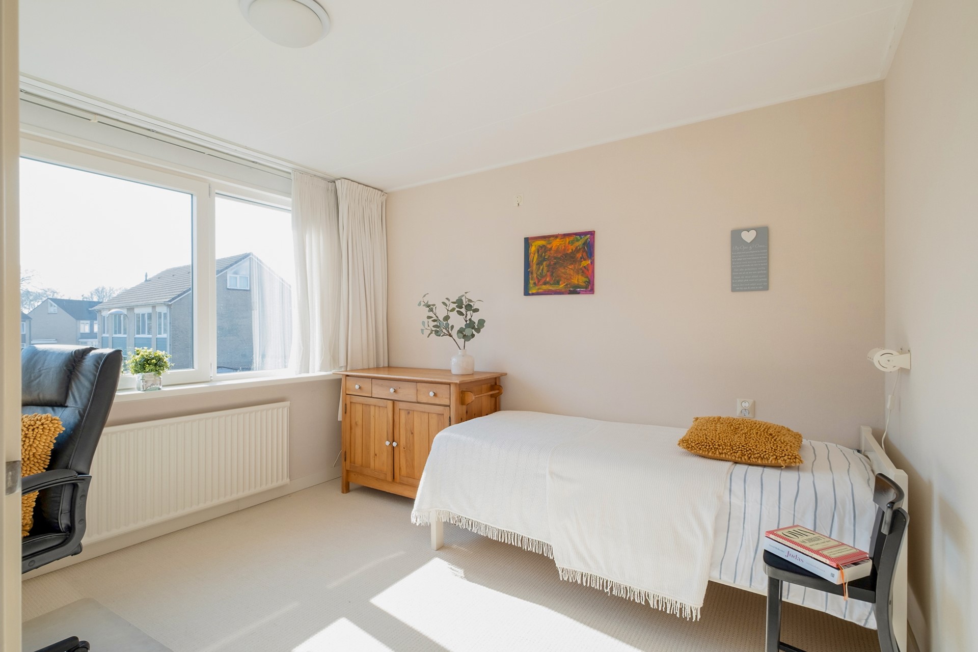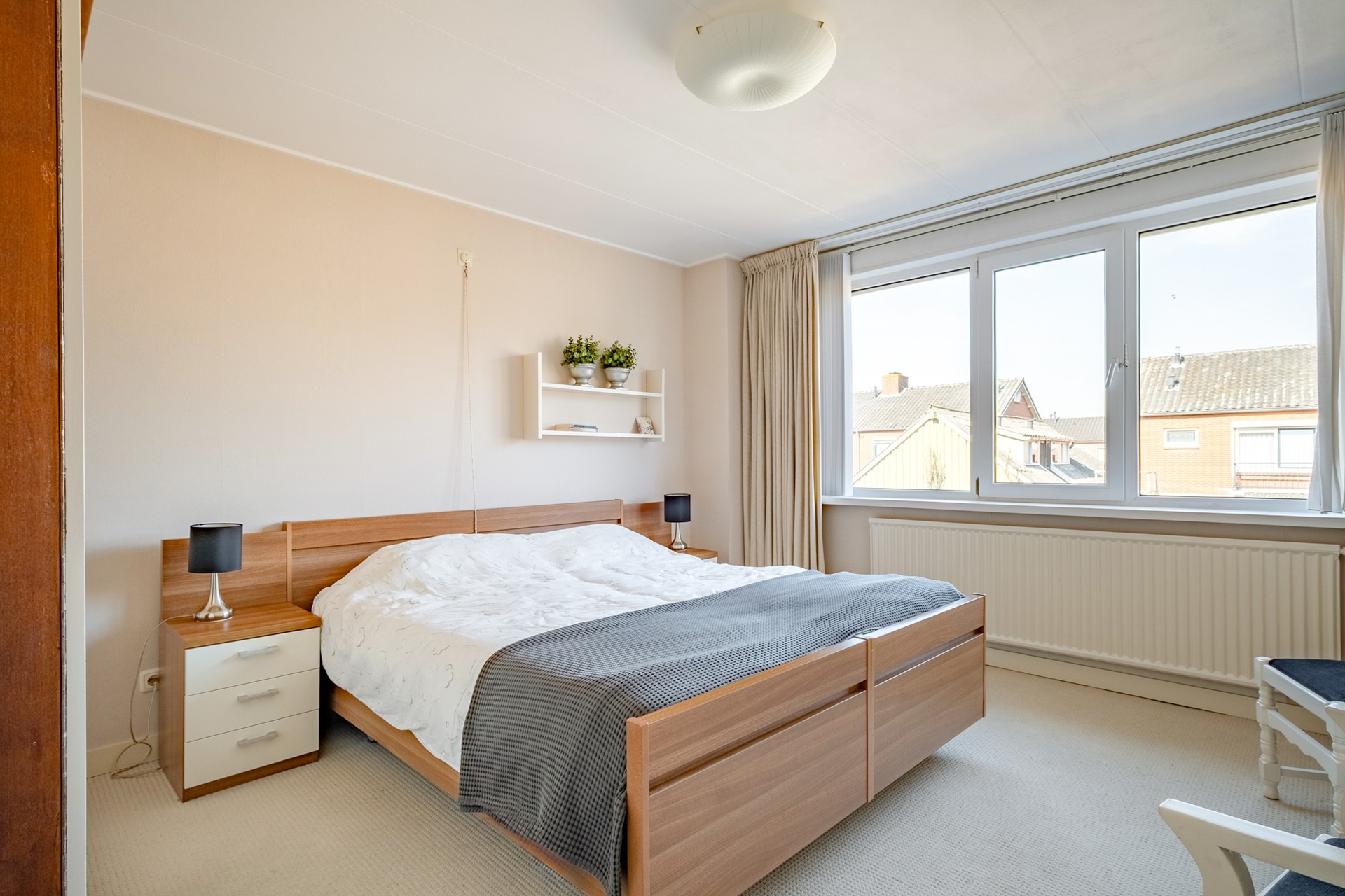 De overloop is licht en verzorgd en geeft toegang tot alle vertrekken. Wat direct opvalt, is de prettige maatvoering van de slaapkamers. De grootste slaapkamer biedt volop ruimte voor een tweepersoonsbed en kastruimte, terwijl de overige kamers zich uitstekend lenen als kinder-, logeer- of werkkamer.