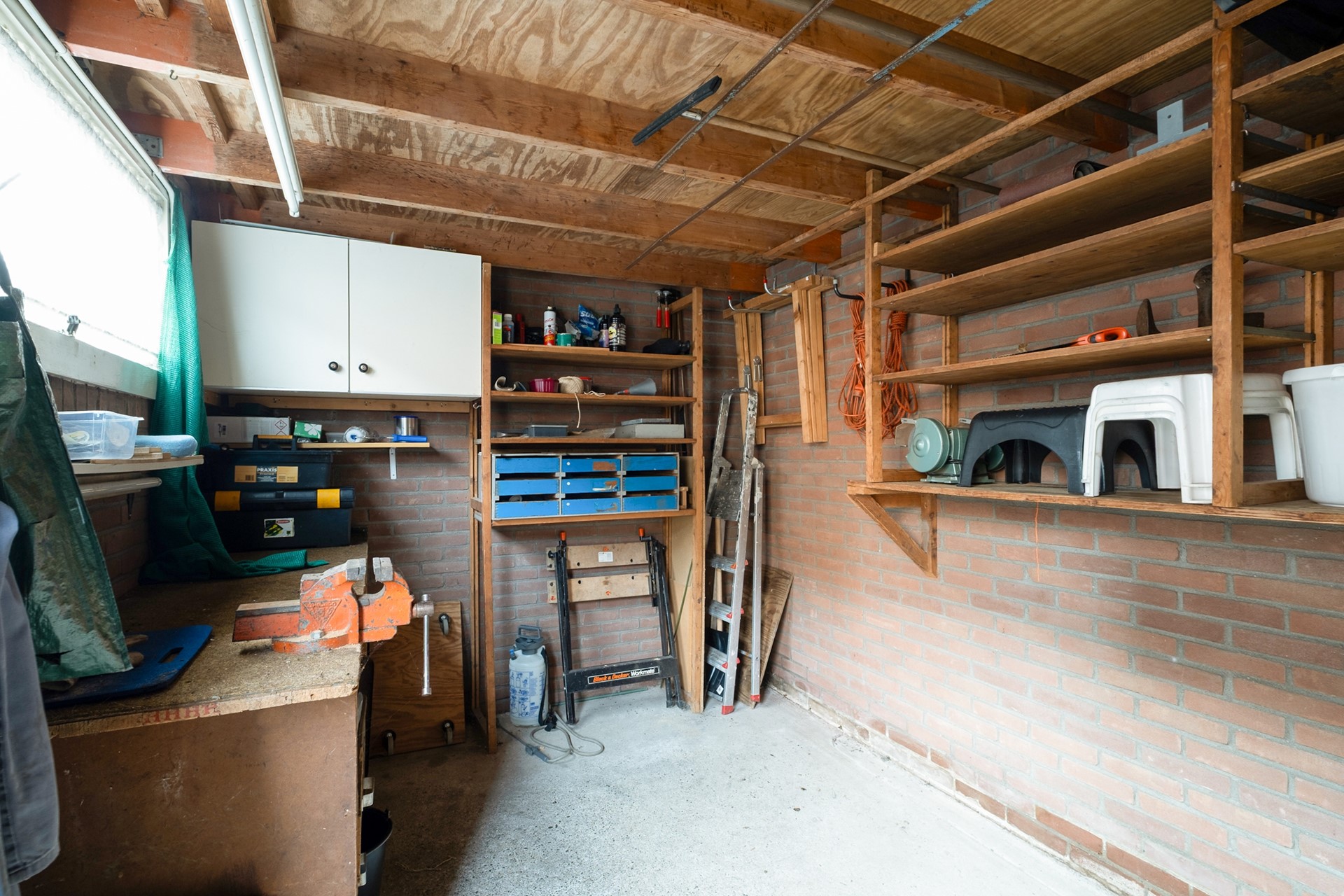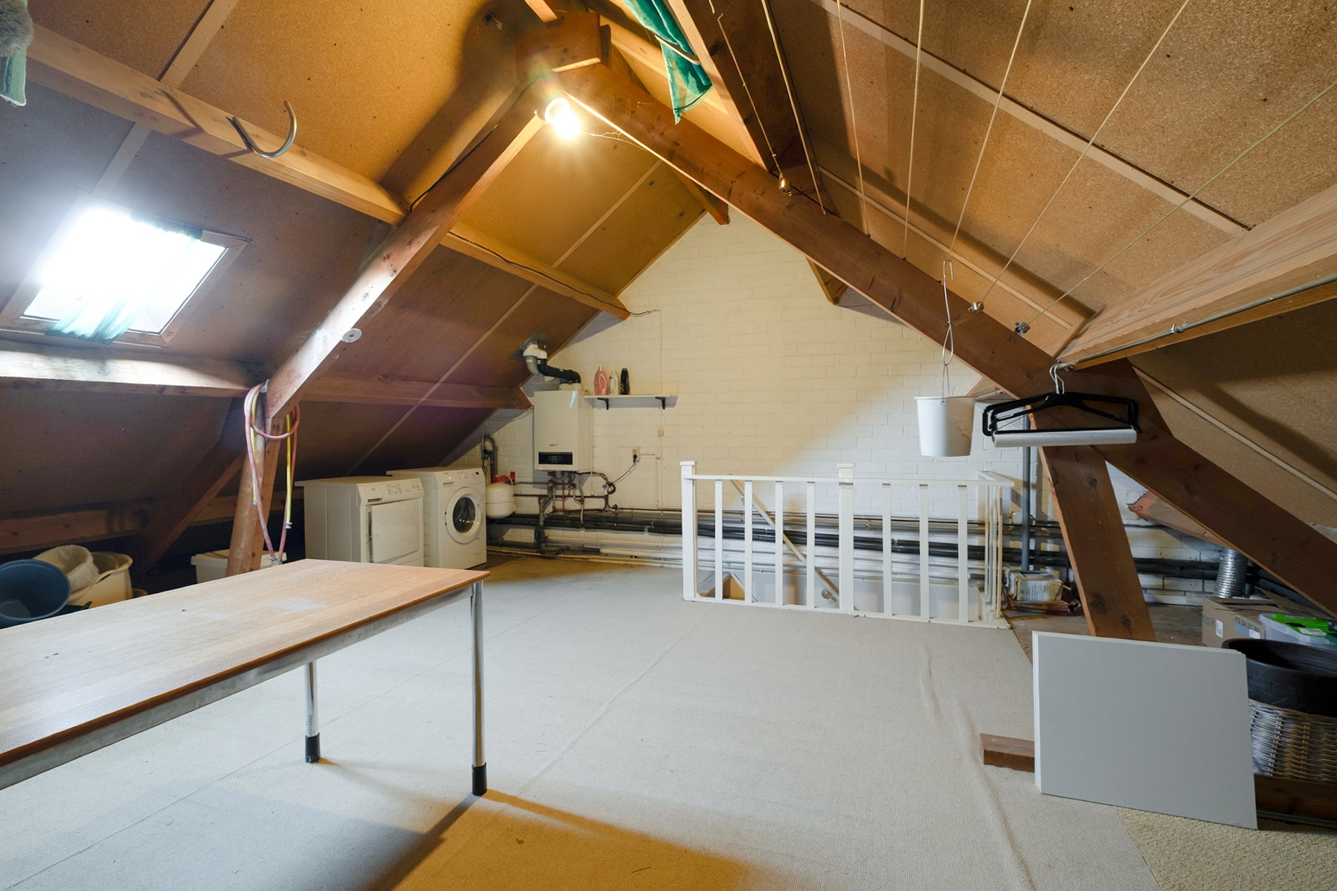 Via een vaste trap bereik je de tweede verdieping. Deze verdieping is momenteel in gebruik als ruime bergzolder en biedt volop praktische opbergruimte.
